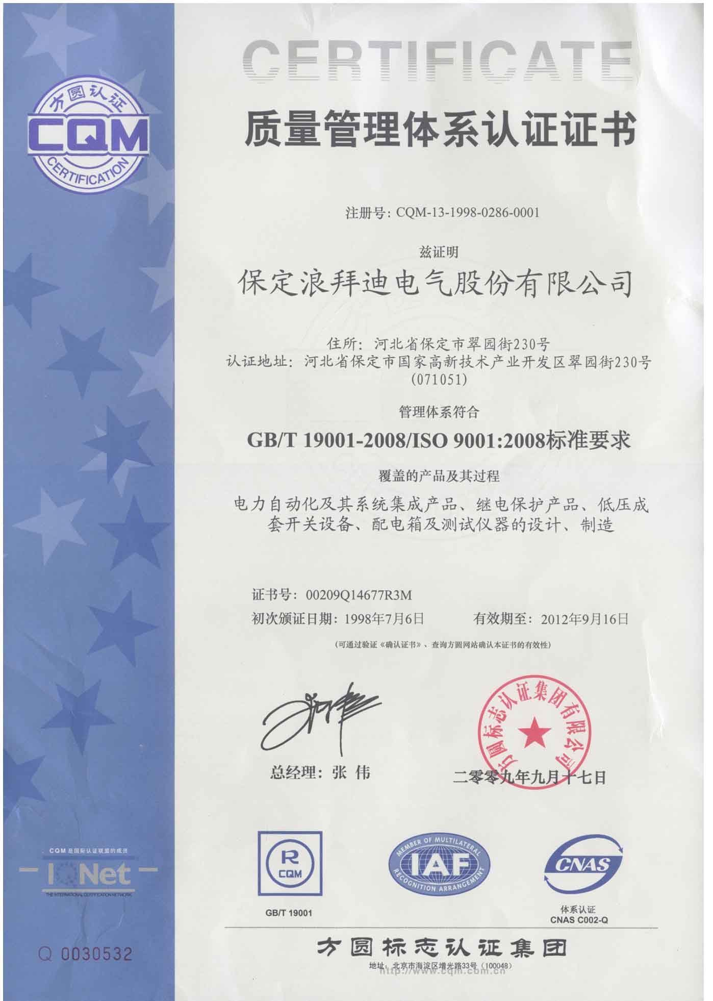 2009年9月17日方圆标志认证集团有限公司一行四人来公司进行质量管理体系认证的复审工作.经过两天的严格审查,我公司顺利通过认证复审,并当场颁发新的认证证书.期间对审核小组提出的一些小建议我们也积极采纳,力争将公司的质量管理体系做到名副其实。